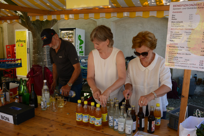 Veronika Marte und Sr. Rita-Maria bedankten sich sehr herzlich bei den verschiedenen Teams, die mit großartigem Einsatz dieses Benefizkonzert überhaupt erst ermöglichten. Schon am Vortag kamen viele Engagierte zusammen, um die Festzelte aufzubauen. Schön war, dass am Sonntag beim Bedienen auch viele junge Leute, Mitglieder der Studentenverbindung Bregancea, kräftig mithalfen. Danke auch für die vielen wunderbaren Kuchen, die mit so viel Liebe gebacken wurden!