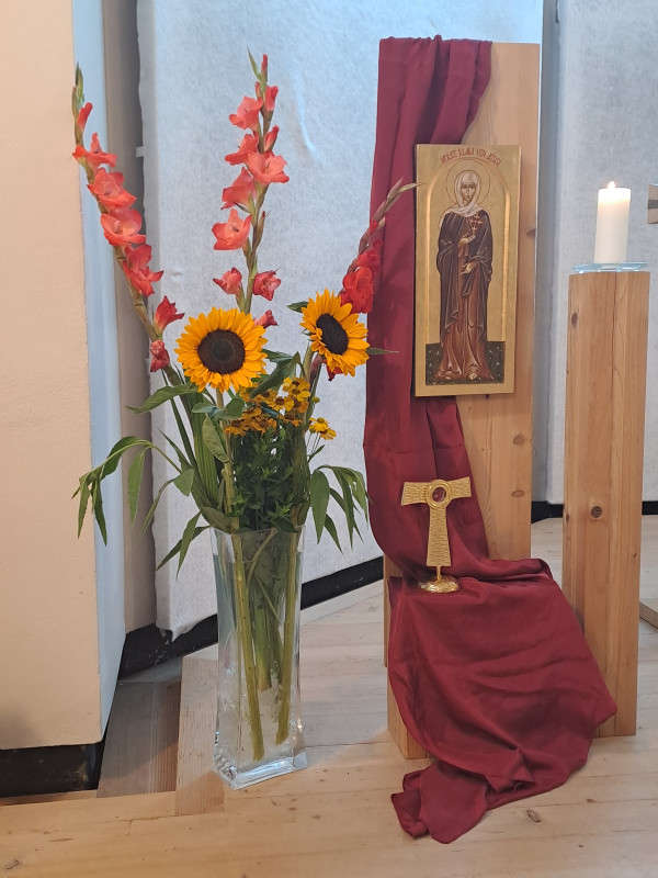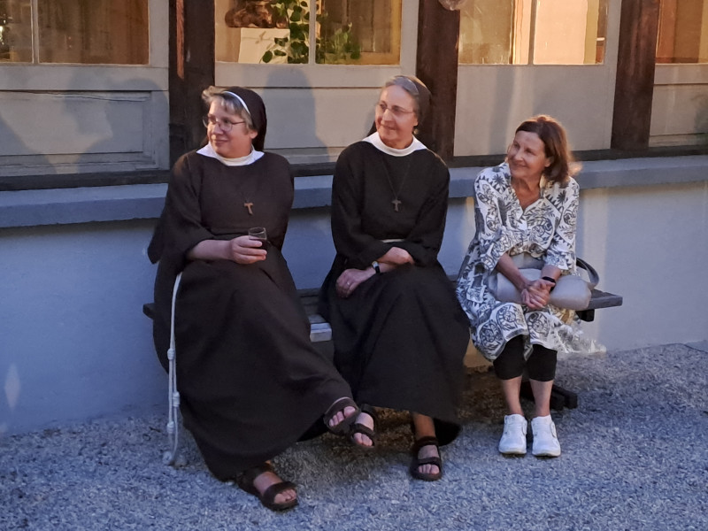 Am Sonntag, 10. August 2025, feierten wir in unserer Klosterkapelle eine feierliche 1.Vesper zum Vorabend des Hochfestes der hl. Klara, Bei herrlichem Sommerwetters konnten wir anschließend zu einer Agape in den Innenhof des Klosters einladen. Begleitet von der stimmungsvollen Musik von Silvia freuten wir uns bis spät in den Abend hinein über die guten Begegnungen und Gespräche.